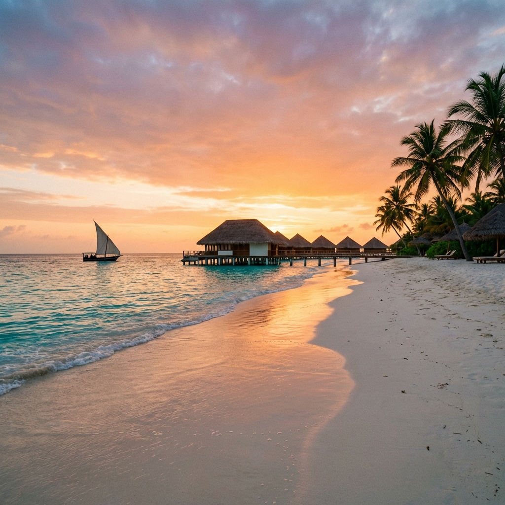 Private pool villas, modest swimwear friendly beaches, and sunset dhow cruises.